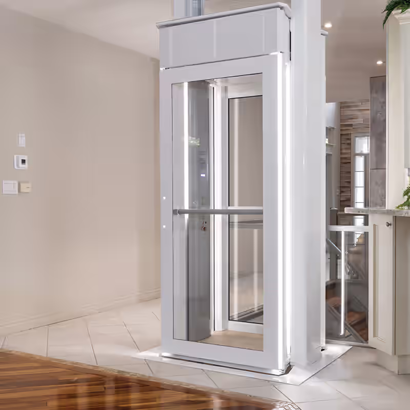 The Luma lift fits easily into your home with its self-supporting rails and concealed quiet drive system. The fully enclosed cabin with crystal clear acrylic panels, elegant lighting system and neutral white finish makes Luma feel spacious and at home in virtually any décor.