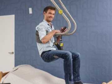 Free standing tracks available to allow fully functional ceiling lift use without home modifications